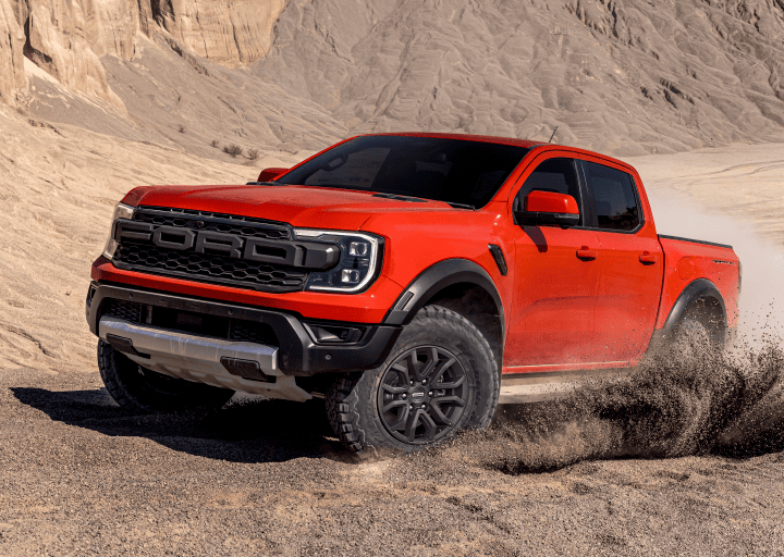 Ressentez la puissance de 210 cv du Ford Ranger Raptor avec un design robuste, prêt à relever tous les défis.